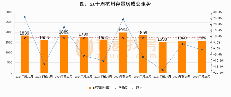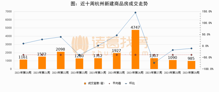 【杭州成交周报】第29周新房成交985套,二手房1579套,涨价房源580套