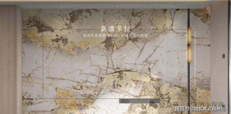 充分考虑业主的个性化需求,在电视背景板提供了新潘多拉、云中翡翠、弗朗明戈金三种结晶釉面岩板选择,成本更高,施工难度也更大.