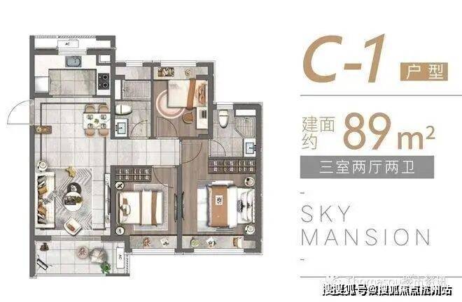 除了建面约89㎡的洋房,建面约83~89㎡高层户型也各有所长,均是三房设计,无论是从结构布局,还是空间利用皆相得益彰,承载一家人的美好生活。高层户型如下: