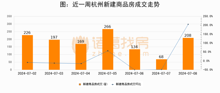 【杭州成交日报】07月08日新房成交208套、二手房289套;涨价房源56套