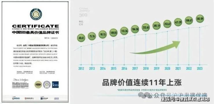 自2005年以来, 金茂已经连续19年入围“中国500最具价值品牌”榜 ,2023年更是以 582.09亿元 的品牌价值位列 第174名 。(数据来源于金茂官网)