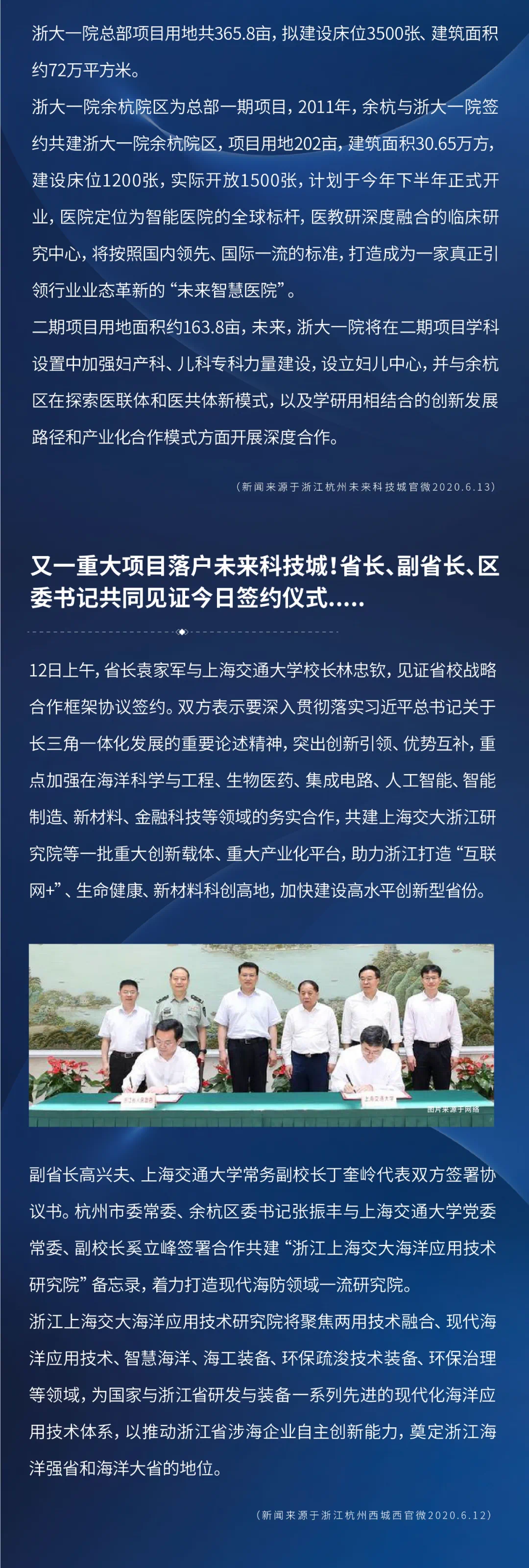 浙大一院总部、浙江上海交大海洋应用技术研究院落户未来科技城