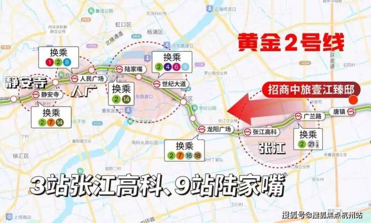 2号线烫金大动脉 :2号线 3站张江高科,9站陆家嘴, 连缀包括嘴、南京东路、人民广场、南京西路、中山公园、天山顶级商圈,贯通4个国际商务区,南北互连两大国际机场和虹桥火车站,“奢华”程度不言而喻。