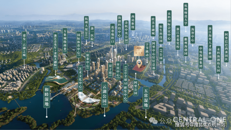 南接阿里公园,临近五常湿地、余杭中央公园,三公园环抱,生态宜居。