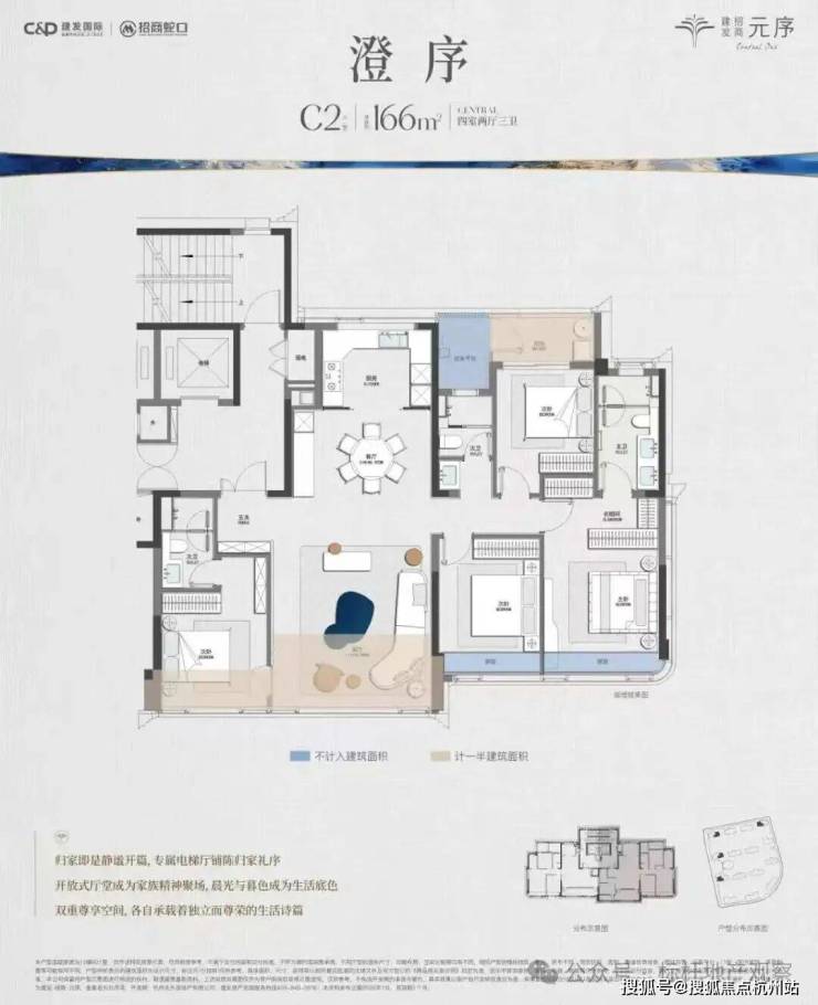 166㎡四房两厅三卫:双套房设计,超大落地窗,独立电梯厅,标配嘉格纳电器四件套。