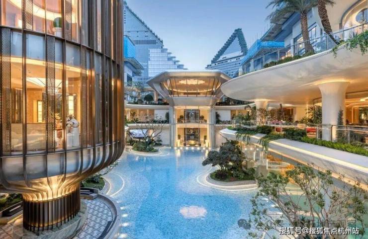 元序打破平面园林局限,打造杭州首座三层立体景观水院,实现了“芭提雅”式的沉浸度假秘境体验。