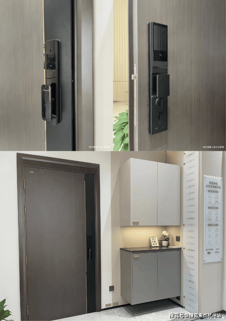 【尊崇入户 赋予生活仪式感】入户——春天木门,内置锌合金龙骨架、钢板门芯和双层门框,有效保证安全;智能门锁——格里维尔,指纹、密码、临时密码、虚位密码、卡片,远程和机械钥匙七种开启方式;入户玄关——日门、大建,符合日本 JAS 认证的严格的 F☆☆☆☆最高标准(甲醛释放量≤0.3mg/L) ,采用生态板材质,坚硬好打理,内部层板可调节,可以灵活摆放不同高度的物品。