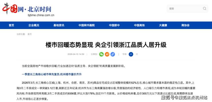 中国网评论:楼市回暖态势显现 央企引领浙江品质人居升级