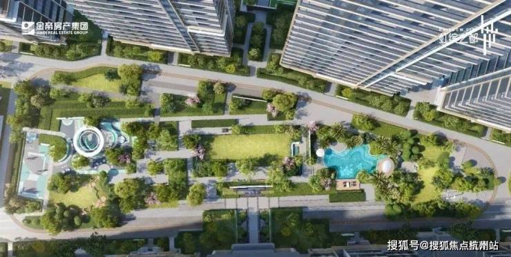项目1期8栋住宅建筑呈南北排布,围合约13000方景观中庭。从鸟瞰图来看,虹缤之都9#楼既与银湖公园紧邻,向湖景公园敞开怀抱,向南又俯小区中央园景。自然形成以“园”为庭,以“湖”为院的“前庭后院”双乐园体验。