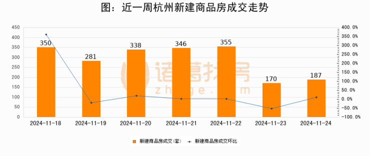 【杭州成交日报】11月24日新房成交187套、二手房261套;涨价房源47套
