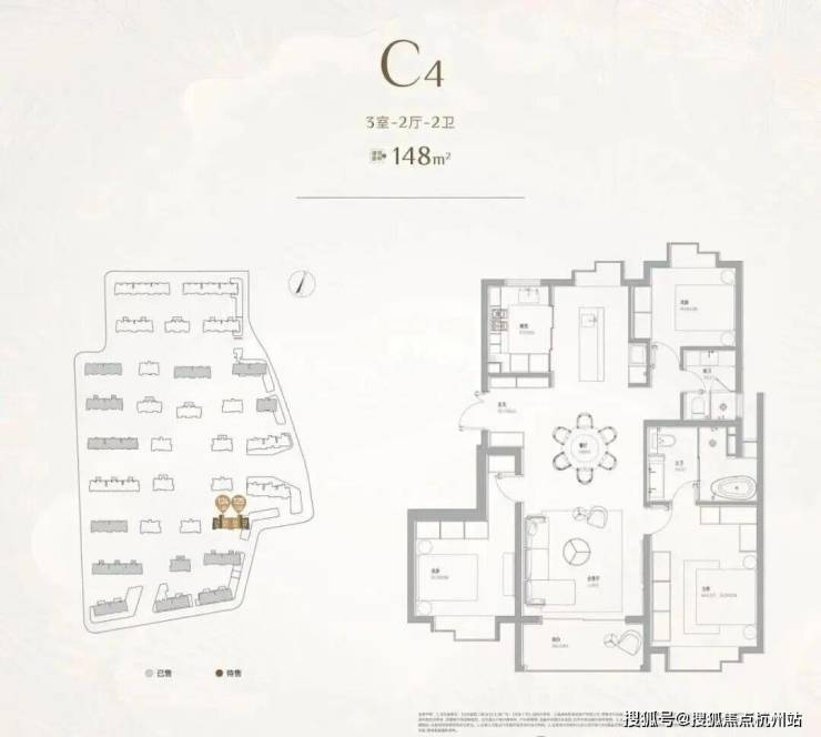 项目一期房型均呈现大开间、短进深的特点,主力房型为131㎡3房,占到一期总量的70%,其余房型为100㎡2房,155㎡3房,175㎡4房。项目一期于2022年11月入市,推出621套房源(C区),总认购1400+组,认购率225%,入围分55.28,开盘售罄!