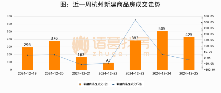 【杭州成交日报】12月25日新房成交425套、二手房260套;涨价房源20套