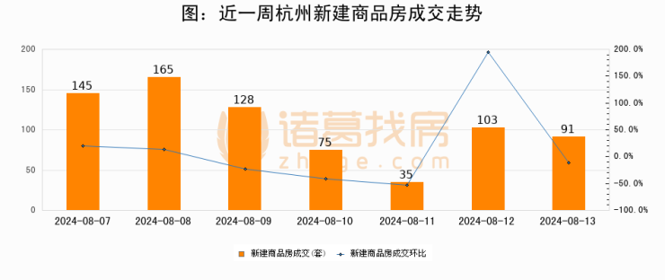 【杭州成交日报】08月13日新房成交91套、二手房169套;涨价房源64套