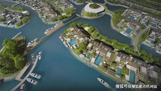 项目从此前曝光的设计方案就可以看出亮点, 每一排别墅前都有一条渠道,引入水系,可以停游艇。