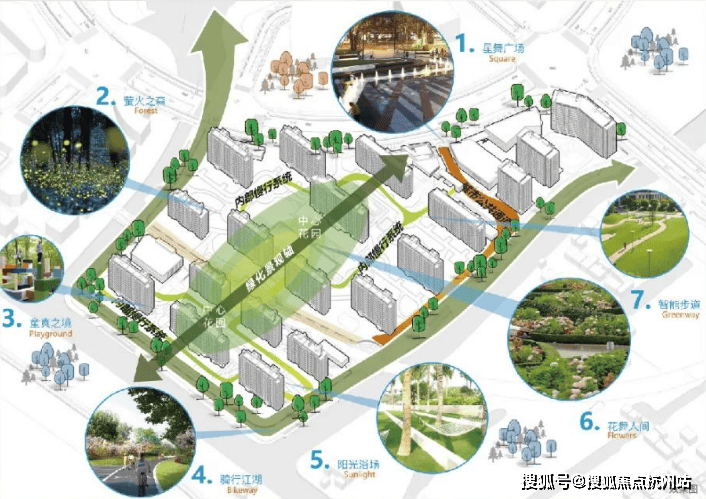 据悉社区由自持住宅、可售住宅、社区配套三大功能组合而成,北区为公区自持配套区,中区为住宅社区,南区为住宅社区及配套。