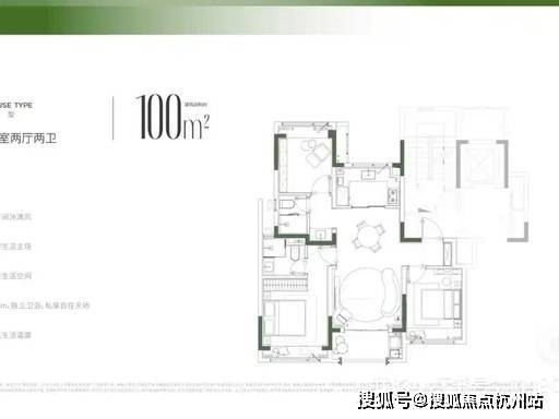 1. 建面约 100㎡ 3 房 2 厅 2 卫(入门爆款)
