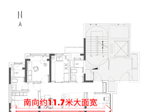 项目打造 100-193㎡全周期改善户型 , 得房率 80%-82% ,全系 南北通透、三 / 四开间朝南、全明无暗卫 ,空间利用率高。