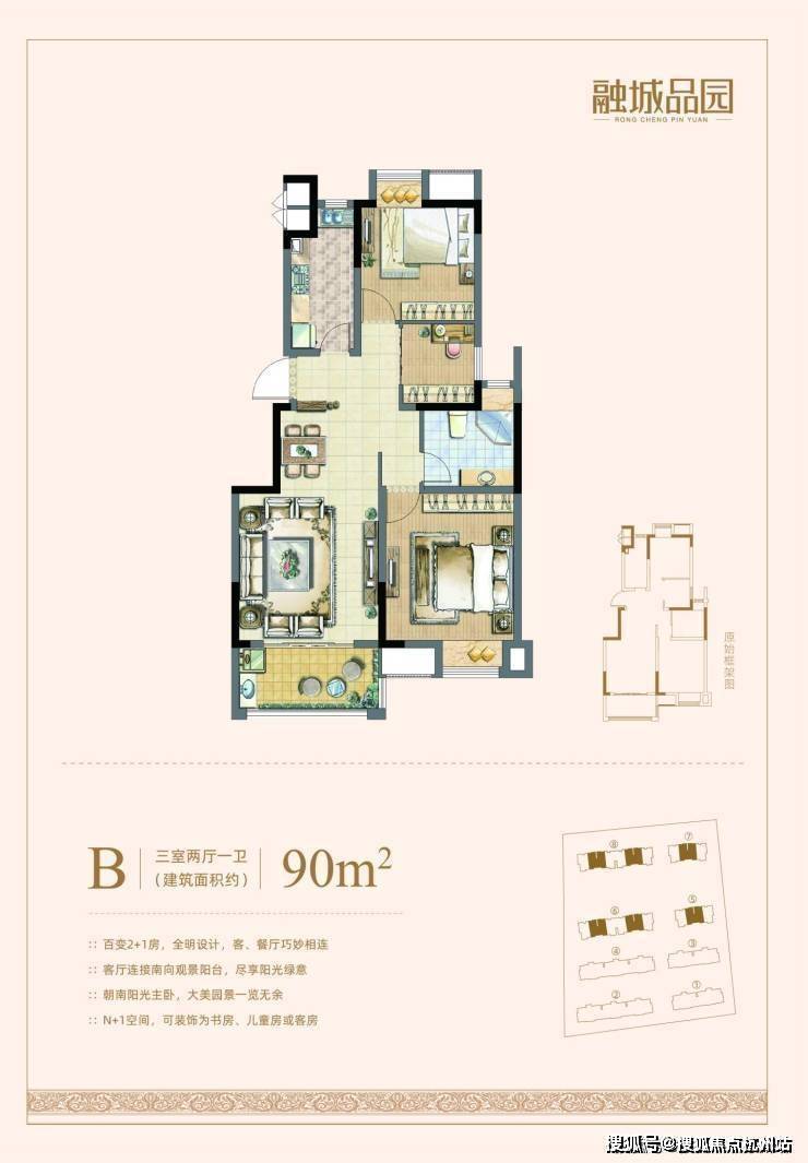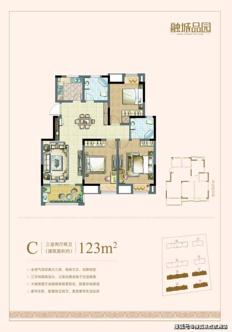 户型与价格:有90㎡、110㎡、123㎡等户型,均为三房设计。其中,90㎡精致三居为11层小高层,1梯2户,3室2厅1卫,总价140-150万元;110㎡舒适三居也是1梯2户的11层小高层,3室2厅2卫,总价175-185万元;123㎡奢阔三居是6层花园洋房,1梯2户,3室2厅2卫,总价205-215万元。
