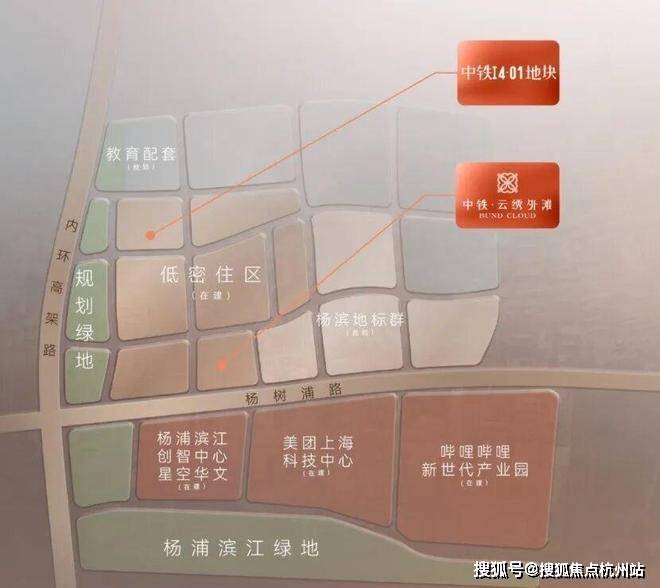块属于杨浦滨江“九宫格”之一,紧邻内环高架、12号线宁国路站,直线距离滨江约700米。地块北面是一所九年一贯制学校,南侧是中建壹品·外滩元境;周边还有已经售罄的海玥外滩序BUND98、中建壹品·浦江之星项目。