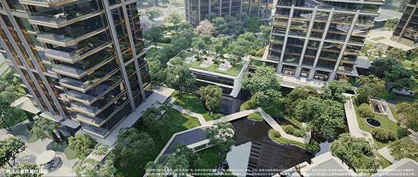 3500㎡下沉水苑“回归之境”,汇聚会客、泳池、茶室等多功能空间;百米绿茵“探索之境”,融入派对庭院、文学花园与游戏甲板;