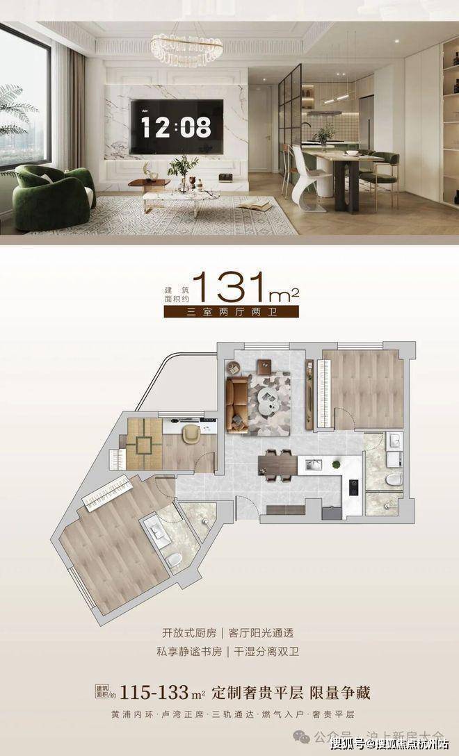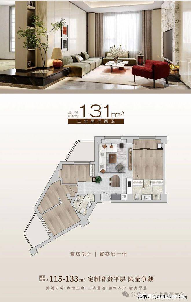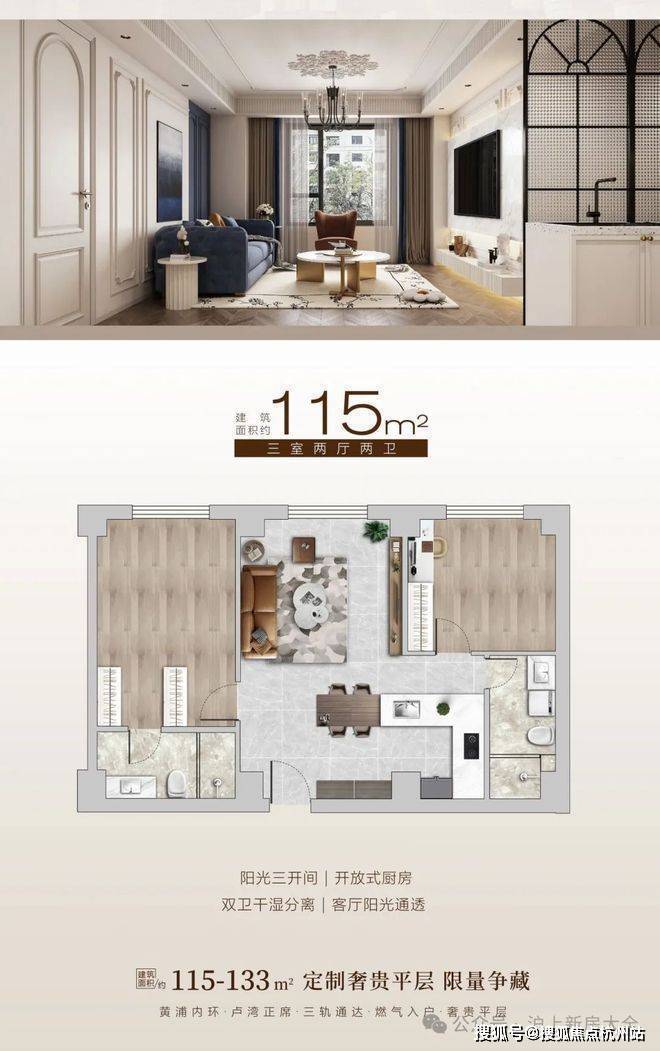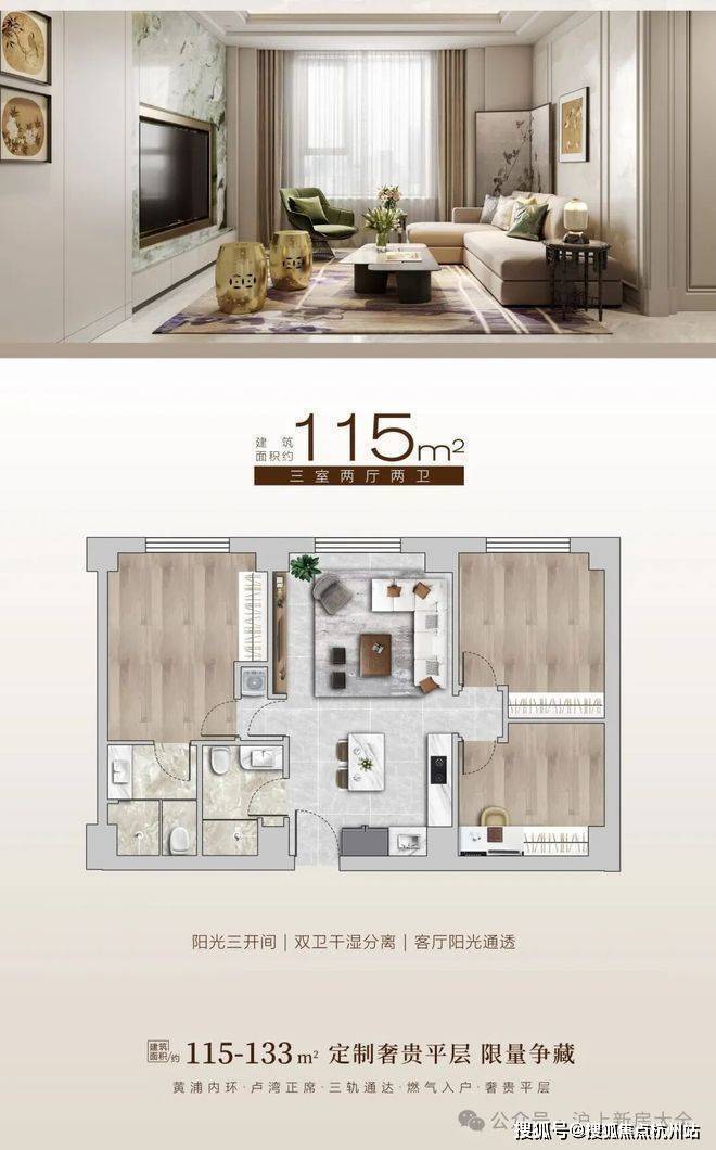 黄浦·滨湾】黄浦卢湾板块,通燃气大平层,115-133平奢装三房,鲁班路地铁口,3条地铁线,4梯6户,600万起买黄浦核芯
