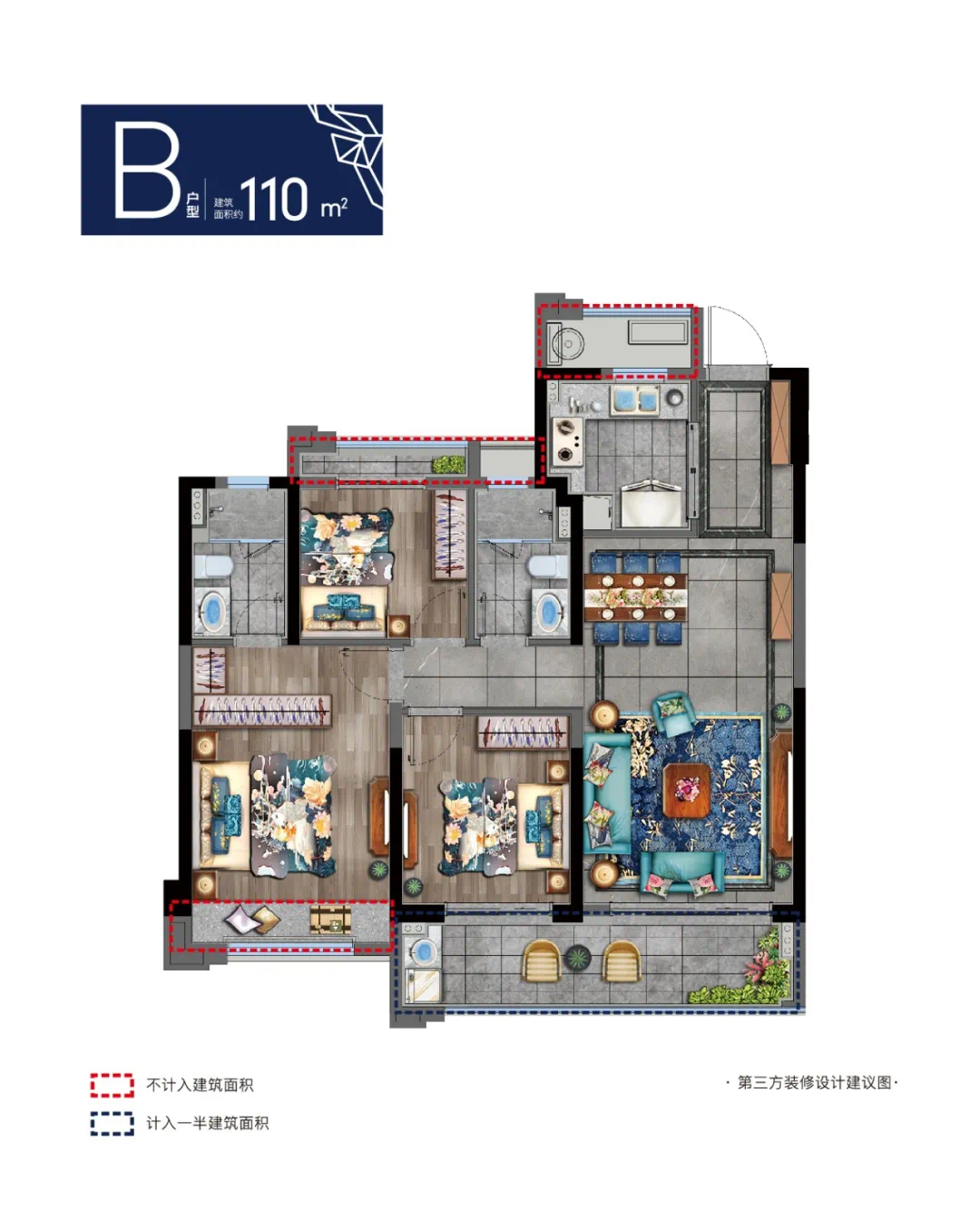 4、本资料印制时间为2021年6月。(本宣传资料所涉及的户型图为装修示意图,与实际可能存在差异,图上所标尺寸、外墙、构件、方位、局部结构、入户门、开门方向、内墙、空调位、阳台、栏杆、装修、家具、 陈设及其他附属设施设备等与交付实物可能不同,上述信息仅供参考 ,均不作为交房标准均为不属于交付范围;同时本宣传册内可移动陈设(如家具、电器、装饰品等)等未注明 属于交付范围的设施,均为非交付范围,交付时均不存在。本宣传册中户型配图为装修空间效果示意,其展示的装修装饰( 如地板、墙面、门窗等)、户内格局和尺寸(如浴缸、洗漱池、部分隔墙、房间等)、公共区域(如景观、楼道、外立面、公共装修等)等的形式/样式、位置、朝向等细节情况做了效果处理,均为非交付标准,最终以合同约定及实际交付为准。本宣传册户型图所标尺寸面积仅供参考,不同户型的面积尺寸,功能布局,空间分割、门窗、管井形态位置等均有不同;相同户型因楼栋、楼层、单元等差别,局部结构、面积、朝向等也可能存在差异,最终以实际交付为准。)
