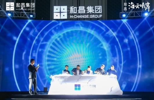 在本次发布会最重要的启动仪式环节,和昌集团董事长武磊,和昌集团物业公司董事长沈典维、和昌集团设计部总经理郎云鹏、和昌集团青岛公司总经理张淞茜、香港L & P瓴柏国际设计总监VICENTE VALERIANO J. DAYAG JR上台,共同开启2019和昌云系产品发布会暨和昌·海云曦岸新品说明会启动仪式,将本次发布会推向高潮。