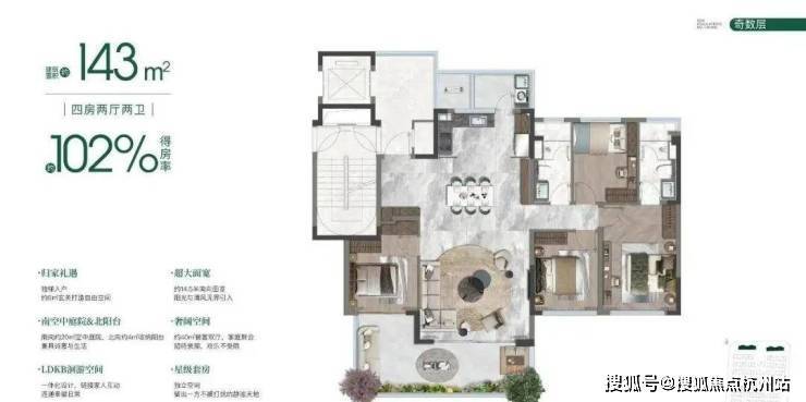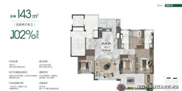 户型亮点十足:约14.5米南向面宽+南向约20㎡空中庭院+北向约4㎡收纳阳台+约40㎡餐客双厅…近园区改善必看!