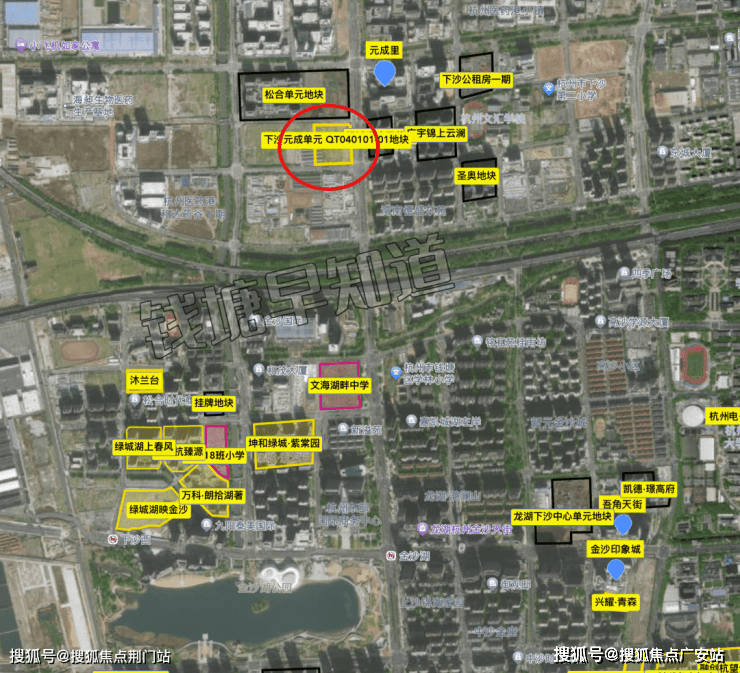 地块紧邻绿城春咏风荷里、广宇锦上文澜、湾南德胜东苑等小区,文思小学、杭州文汇学校、杭州市下沙第二小学等学校,以及杭州市第一人民医院下沙院区。