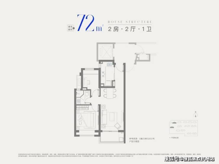 建面约72㎡2房1卫,做到双开间朝南+全卧室带飘窗 , 总价低至2字头 ,是刚需上车2房的优质之选。