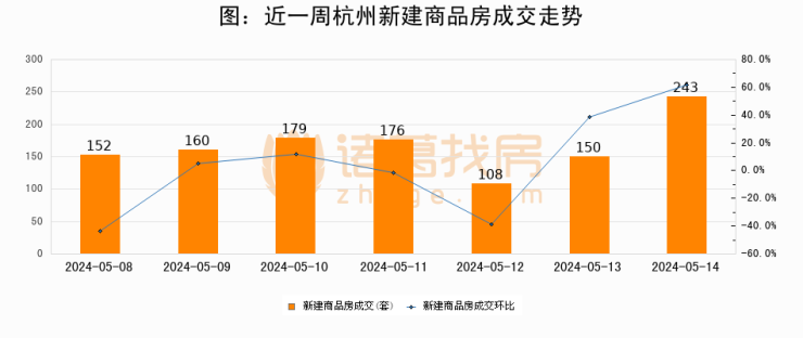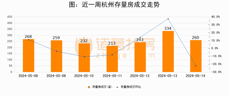 【杭州成交日报】05月14日新房成交243套、二手房260套;涨价房源139套
