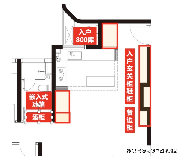 1.投影面积超同价位项目100-200%的收纳柜体空间
