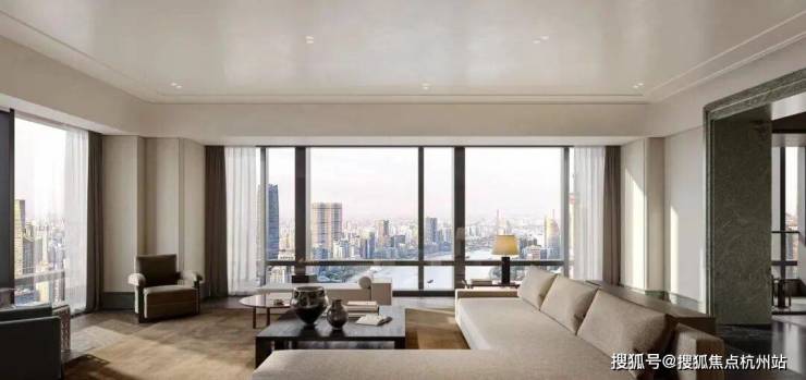 标准层层高约3.15-3.4 米,搭配全景落地窗,室内开阔通透,奢阔感十足。