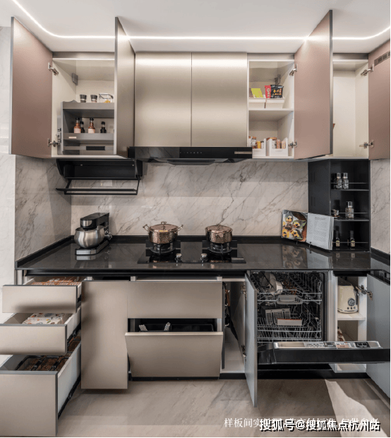 建发海宸打造了超容量橱柜,以更丰富的立体收纳空间,让空间化繁为简、化整为零,配齐吊柜拉篮、双侧台面调料柜、餐具与厨具收纳等,确保做菜时随手能拿到想要的调料,真正做到藏纳有道,拿放有序。