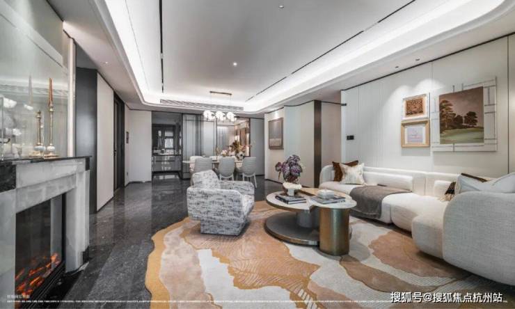 客餐厅一体化,外接南向大面积观景阳台,整个公区视野开阔,尺度阔绰。
