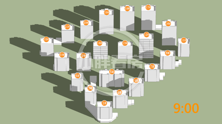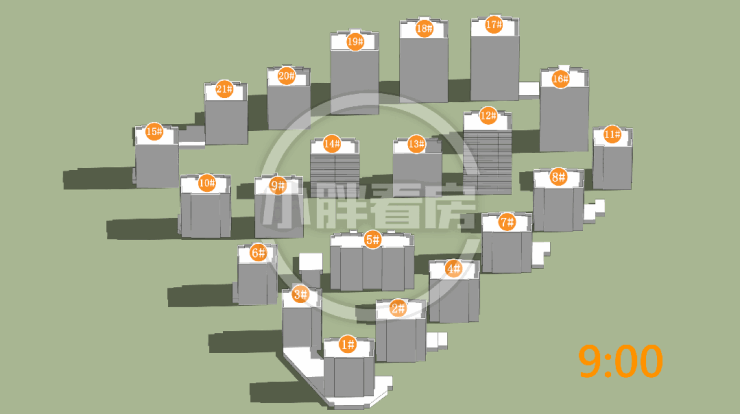 项目楼栋较多(21 幢),低楼层采光需注意选房