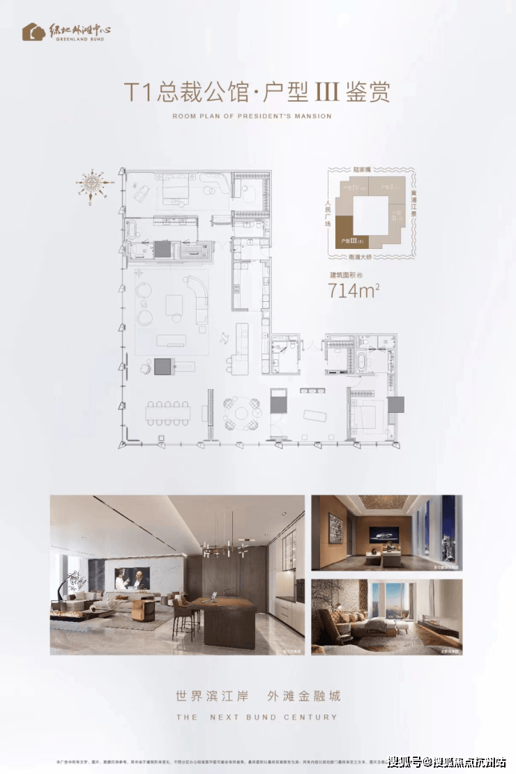 【外滩天幕1715官方售楼处咨询热线】400-965-9259(24小时服务,人工客服8:00-22:00) 外滩天际作为兼具商务、私人社交的复合型空间,是对当代企业家工作生活个性化场景需求的创造性满足:一场精致的圈层沙龙,或是邀请重要合作伙伴参加的一场家宴,它既摆脱了办公室的拘谨束缚,又可以提供传统豪宅所难企及的私人行馆式社交属性。绿地外滩中心推出的约800㎡外滩天幕1715仅有28套,只针对高净值塔尖用户!满足多种场景体验!