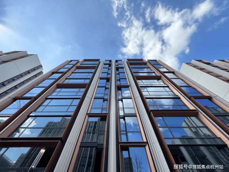 天安1号前期的住宅外立面选用铝板+石材,搭配大面积玻璃,颜值出众!