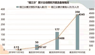 2018年11月,由杭州市政府批准、市发改委(信用办)指导,杭州城市个人诚信分“钱江分”正式发布。目前,杭州350万人主动授权开通了钱江分,两年多来平均每人查询12次。