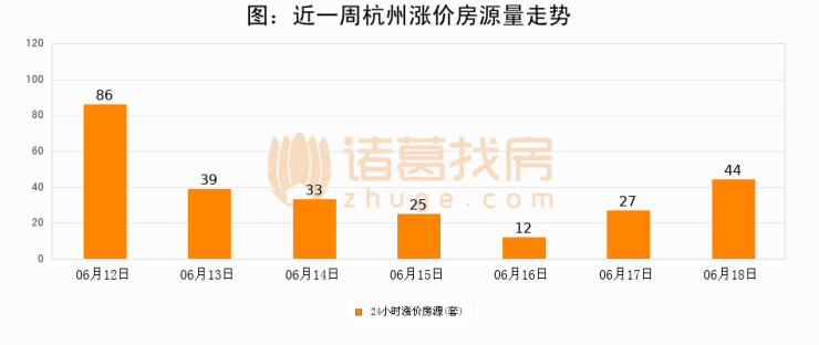 根据诸葛找房数据显示,杭州24小时涨价房源量为44套,较06月17日增加17套,环比上涨63%。与此同时,涨价房源占比小幅扩大,业主信心有所提升。