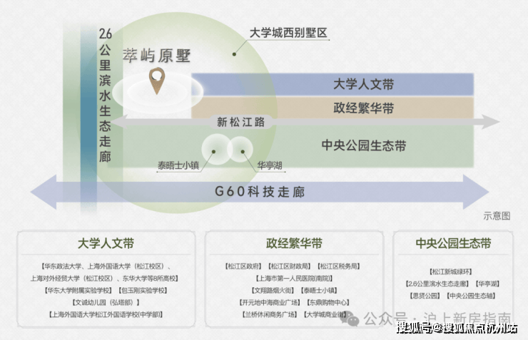 三公里辐射圈内,8所高校(含两所211)华东大学附属实验学校、包玉刚实验学校、文诚幼儿园(弘塔部)等名校环伺,坐拥政务要枢、松江首家三甲医院、繁华商圈皆精粹于此,尽纳墅居版图