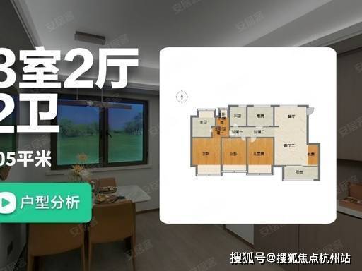 4. 建面约 105㎡三房两厅两卫 —— 宽境舒居,四开间朝南