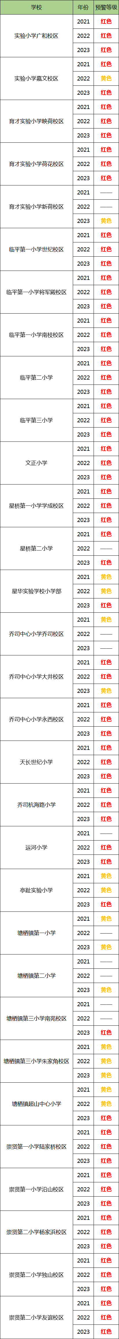 红色预警:表示公办初中对口直升小学毕业人数达到或超过学区初中常态招生计划数的100%。