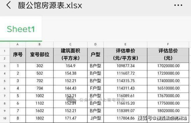 12套别墅一房一价表