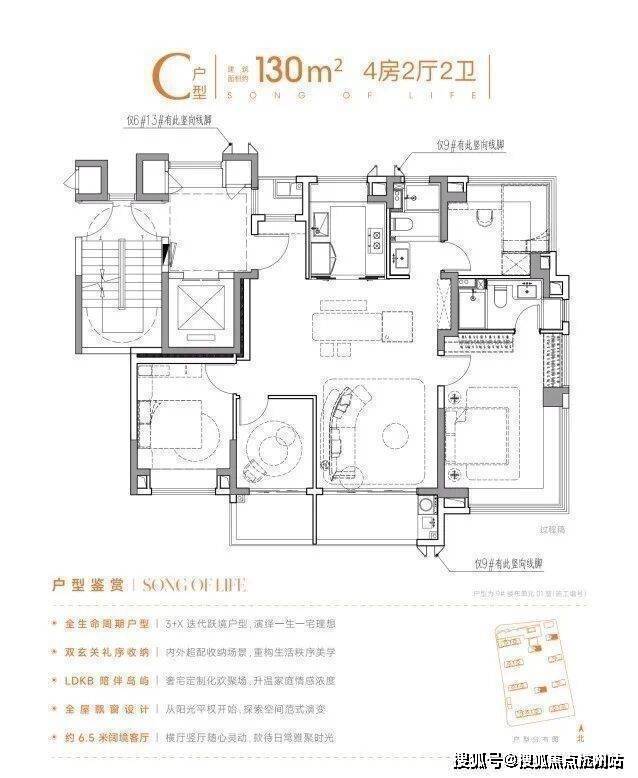 3+X灵动空间可根据需求改造成书房、儿童游乐区或老人房,满足二胎家庭、三代同堂的居住需求;LDKB无界通厅与X空间打通后,可形成约6.5米巨幕横厅,朋友聚会、家庭互动都有足够空间;主卧以酒店式套房标准打造,独立衣帽间、南向全明主卫、270°转角飘窗,奢享感拉满;全屋6大采光飘窗,让每个房间都明亮通透。
