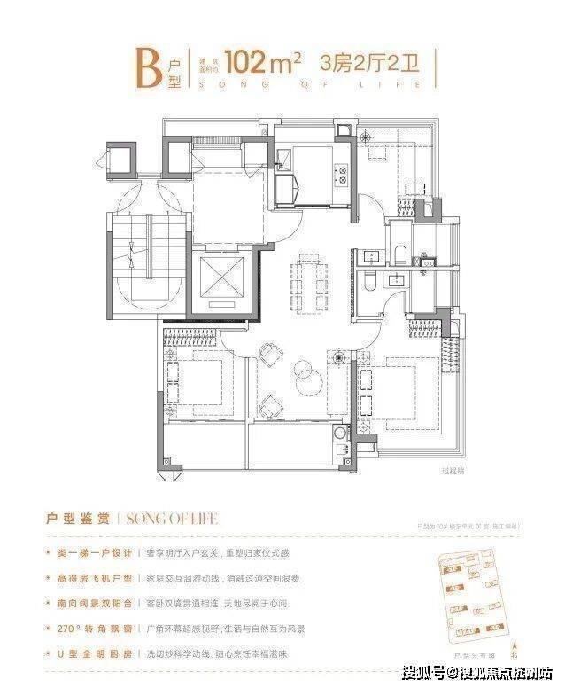 建面约102㎡三房两卫则主打“舒适升级”