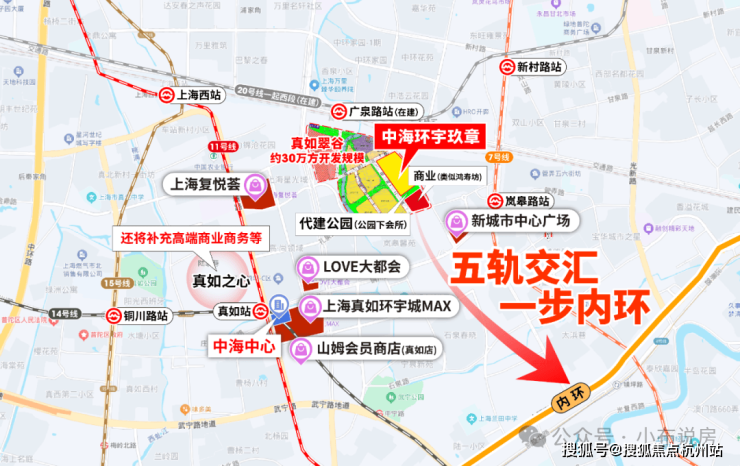 1、五轨纵横+ 一步内环,真如无缝衔接全城高能板块