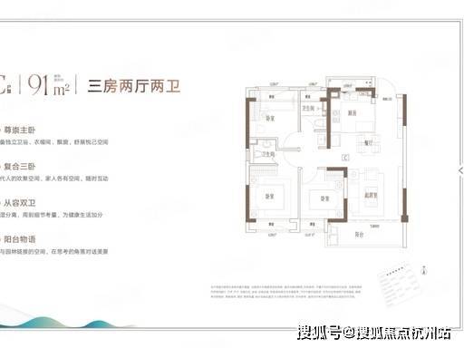用户价值解读:300-400 万级性价比之王。经典飞机户型,三开间朝南。LDK 一体化设计,空间通透大气。双卫配置,早高峰无需争抢。主卧套房设计,私密性强。91㎡做标准三房,空间利用率极高,三口之家一步到位。