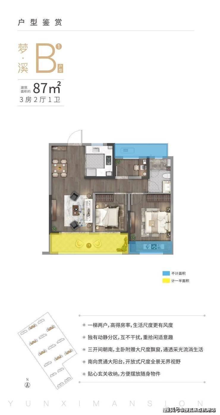 户型名称面积(㎡)格局交付标准核心卖点璟云A802室2厅1卫精装南北通透,明厨明卫,总价低梦溪B86-873室2厅1卫精装南向双卧,紧凑实用曜华C993室2厅2卫毛坯套房式主卧,双卫设计澜庭D1184室2厅2卫毛坯4开间朝南,动静分区