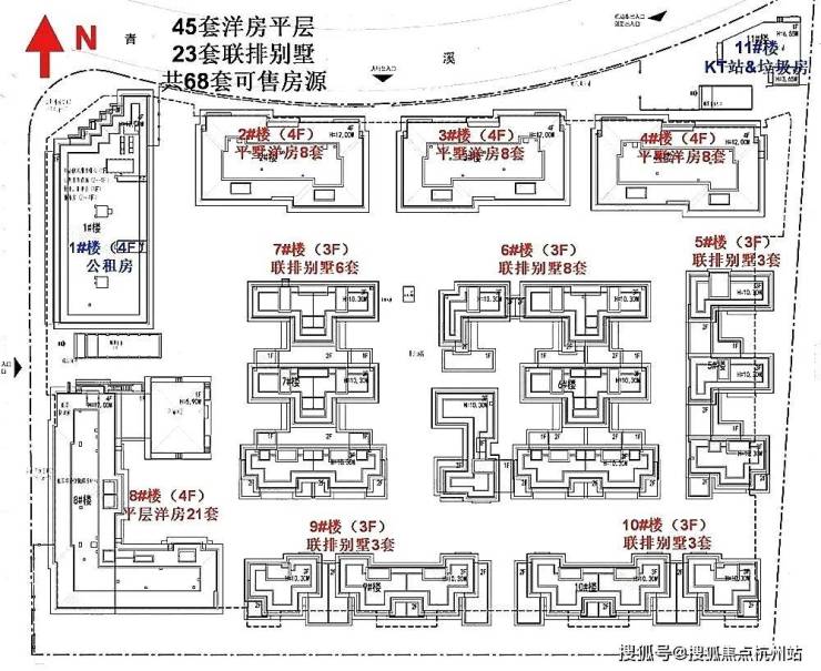 1号楼为保障房,2、3、4、8#为洋房,5、6、7、9、10#为别墅。洋房建面约170-340㎡,别墅建面约430-690㎡
